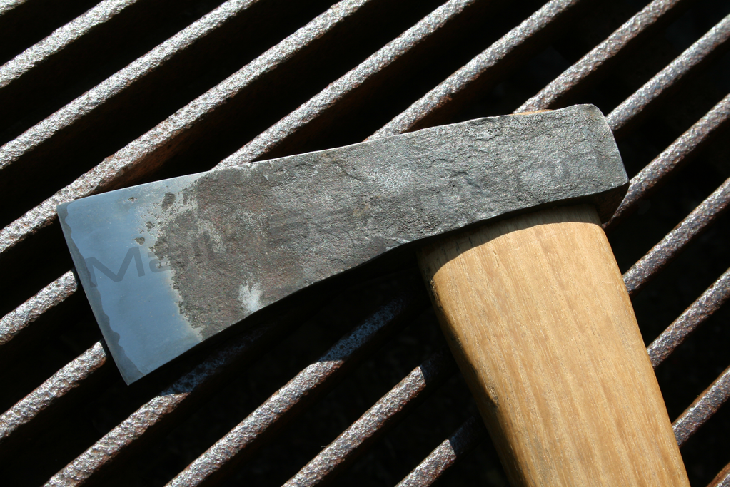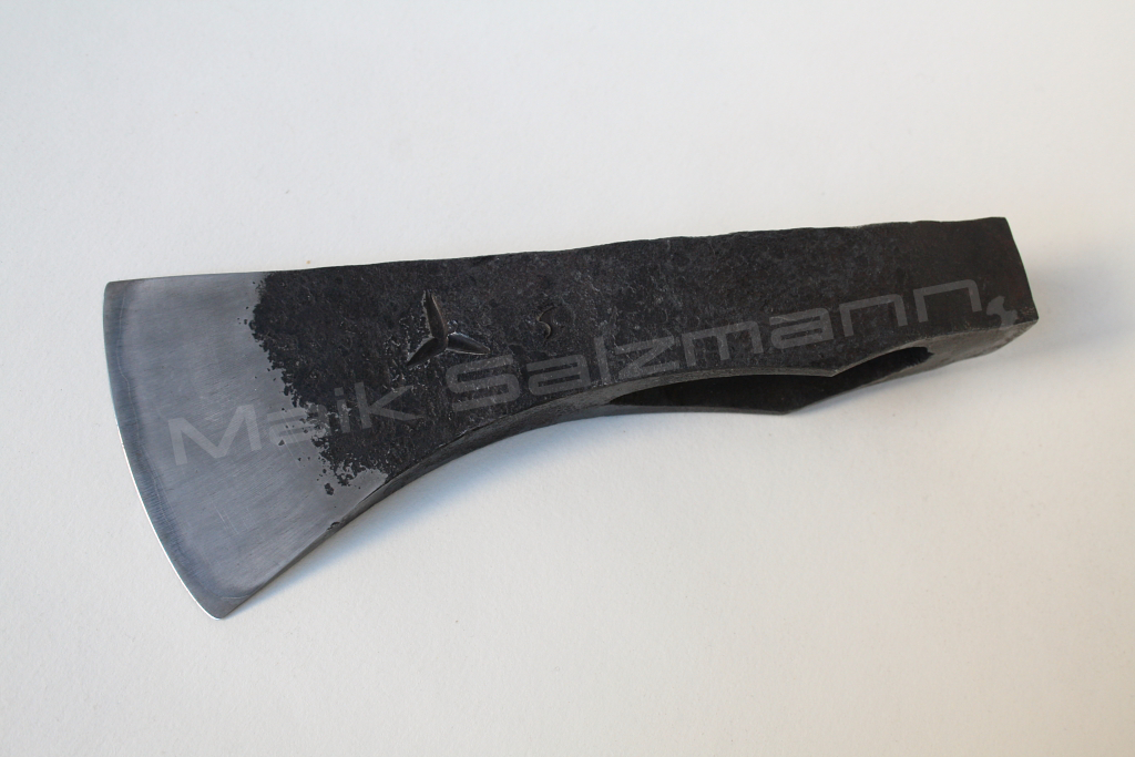 Kleine Axt, an alemannische Funde angelehnt, Baustahl mit Schneidlage aus Ck 75.