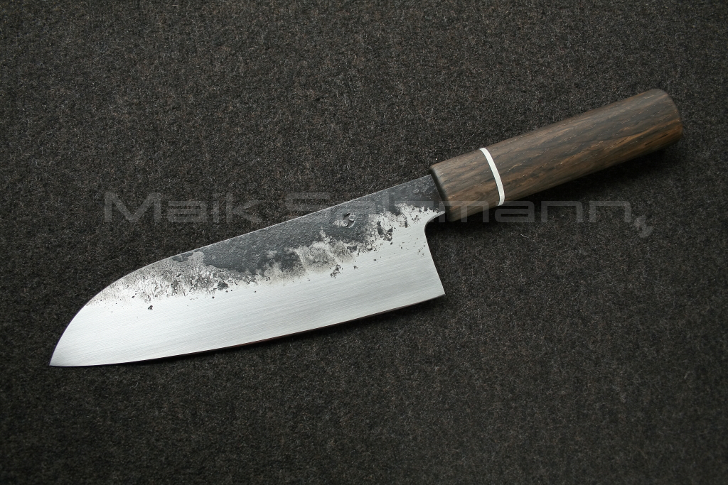 Ich habe die Proportionen beibehalten, es aber kleiner und leichter gefertigt, so dass es sich gut als Küchenmesser eignet. Es hat eine dünne Schneide, dennoch robust genug für andere leichte Arbeiten.